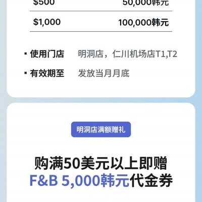 $50 이상 구매 시 신세계면세점 지하 1층 푸드코트 5천원권 증정